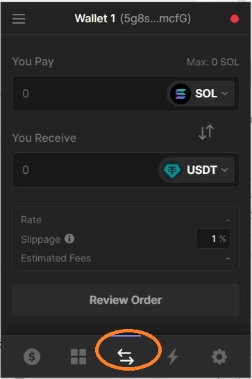 Có thể Swap (hoán đổi) ngay trên ví, chọn biểu tượng 2 mũi tên và tiến hành swap