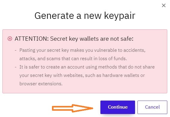 Tiếp theo, chọn "Generate key pair for a new account" để tạo ví mới